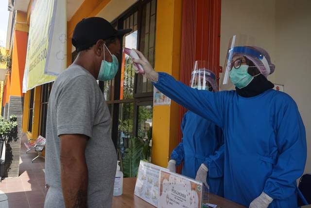 Pasien dengan keluhan batuk, pilek, demam dan sesak napas akan langsung diarahkan ke posko terpadu penanganan Covid-19 dan seluruh keperluan pasien seperti pendaftaran, obat dan pemeriksaan akan dilayani di ruang tindakan khusus dengan petugas yang masuk menggunakan APD lengkap. Sedangkan pasien tanpa batuk pilek dan hasil pemeriksaan suhu normal dapat langsung berobat seperti biasa melalui pintu pendaftaran.