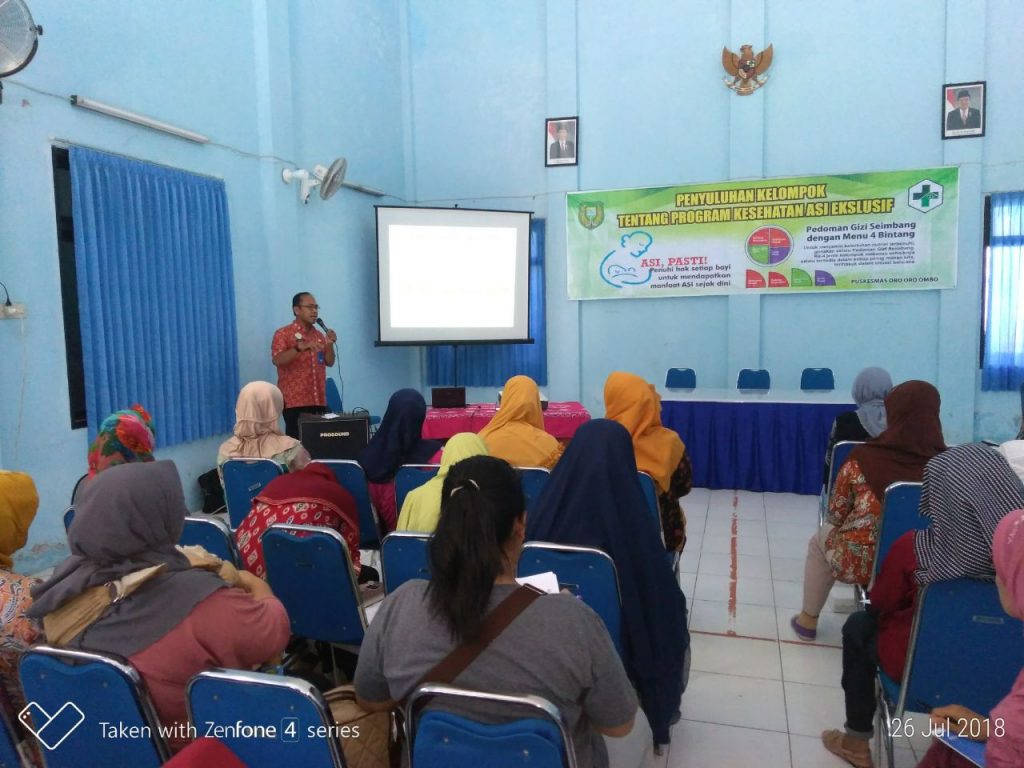 Pada bulan Juli tahun 2018 Puskesmas Oro-Oro Ombo bekerja sama dengan Kelurahan menyelenggarakan Penyuluhan Kelompok tentang Program Kesehatan ASI Eksklusif dan MPASI yang dilaksanakan pada tanggal 23 Juli-27 Juli 2018, meliputi Kelurahan Sukosari, Oro-Oro Ombo, Kartoharjo, Klegen, dan Kanigoro. Acara ini turut mengundang kader posyandu, motivator ASI, ibu hamil, dan menyusui serta lintas sektor. Dengan terlaksananya acara ini diharapkan ibu-ibu mampu melakukan IMD (Inisiasi Menyusu Dini) dan memberikan ASI eksklusif kepada bayinya, serta memberikan MP-ASI secara baik dan benar. Untuk kader posyandu, Motivator ASI serta lintas sektor diharapkan mampu mendukung dan menjadi fasilitator ibu-ibu dalam terlaksananya program IMD, ASI Eksklusif dan PMBA.