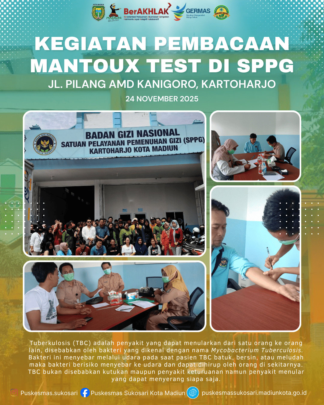 Tuberkulosis (TBC) adalah penyakit yang dapat menularkan dari satu orang ke orang lain, disebabkan oleh bakteri yang dikenal dengan nama Mycobacterium Tuberculosis. Bakteri ini menyebar melalui udara pada saat pasien TBC batuk, bersin, atau meludah maka bakteri berisiko menyebar ke udara dan dapat dihirup oleh orang di sekitarnya. Bakteri TBC dalam droplet dapat bertahan selama beberapa jam dalam ruangan yang tidak terkena sinar matahari dan lembab.
